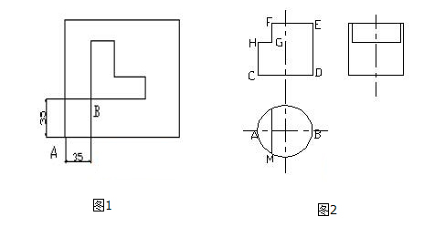 绘制如图2所示三视图时,先画俯视图,再画主视图,按投影规律:主、俯视图应“长对正”可以通过绘制参照线,再关闭参照线层的方法来实现。但用沿极轴进行自动追踪的方法则更简便、快捷。操作步骤如下:单击【绘图】工具条中的“直线”按键,将光标移至A点附近,当在点处显示“交点”特征点时,向上移动光标,当过A点出现竖直方向极轴时,将光标沿极轴方向移至C点附近,用鼠标拾取C点,则C点被输入;同样,将光标移至B点附近,当在B点处显示“交点”特征点时,向上移动光标,当出现过B点的竖直方向极轴时,将光标极轴移至D点附近,当出现水平方向,竖直方向极轴的交点时,用鼠标拾取该点,则D点被输入,自D点将光标沿竖直方向极轴向上移动,输入圆柱体的高,得E点,用鼠标拾取过M点和过E点的极轴的交点得F点,沿极轴追踪输入尺寸即得G点,用鼠标拾取过G点和过点C的极轴的交点得H点,闭合到C点,则圆柱体的正面投影被画出。用同样的方法可以画出左视图。