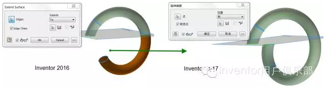 在Inventor 2017中,ASM对延展命令使用到的底层API进行替换,把原来使用的Extend-Sheet-Advanced 更换成了Extend-Sheet-General,同时也对延展的功能进行了提升。下面就用几个例子来对部分提升进行说明。