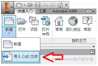 (2)导入CAD文件:启动Inventor,通过“快速入门”,“启动”,“导入CAD文件” 命令来导入一个或多个第三方格式文件。图3.2。