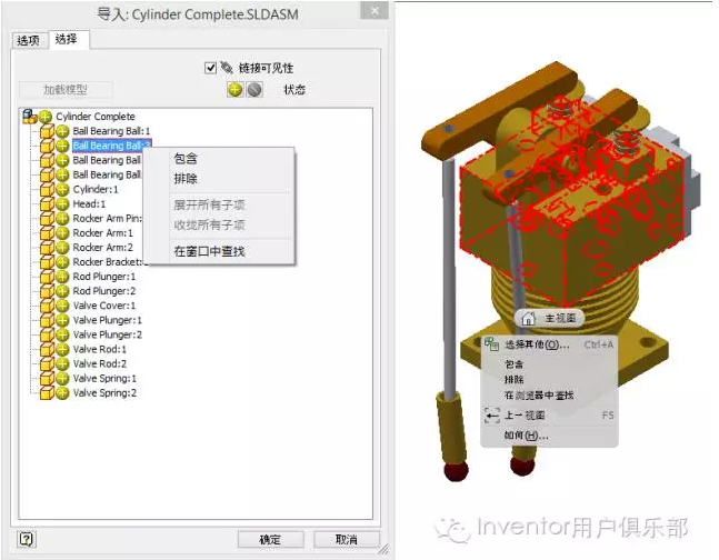 (3)状态 与(4)右键菜单选择包含于与排除,都是为了用户选择哪些零部件需要导入。