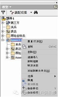 模型导入后,在模型树中选择导入的模型节点,右键会出现相关的邮件菜单,与关联更新相关的主要为:编辑导入、抑制链接和断开关联。图3.8。